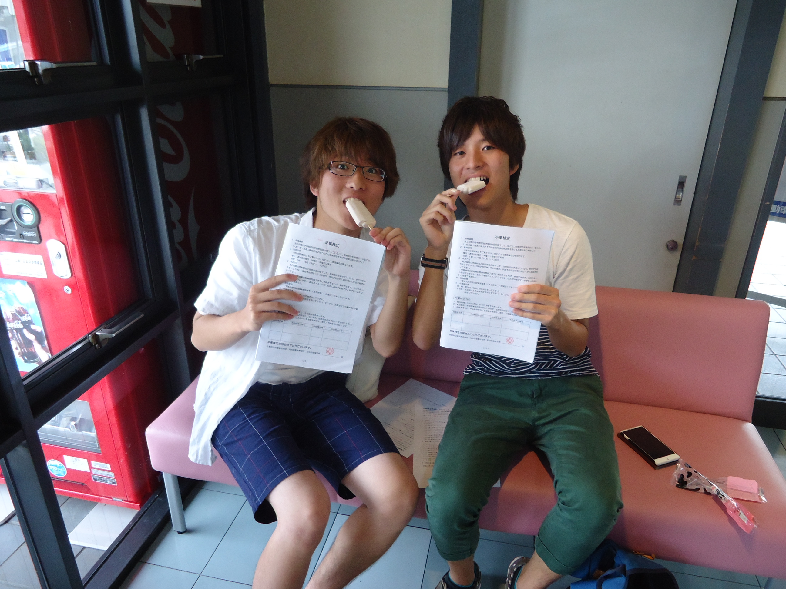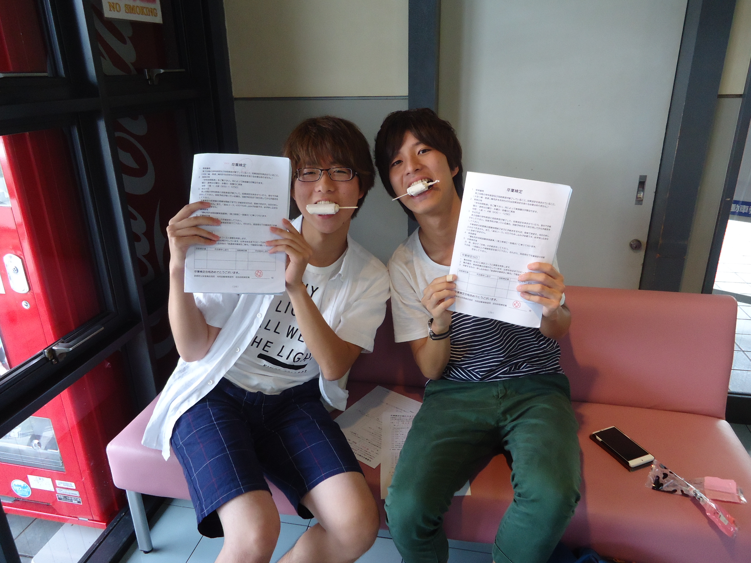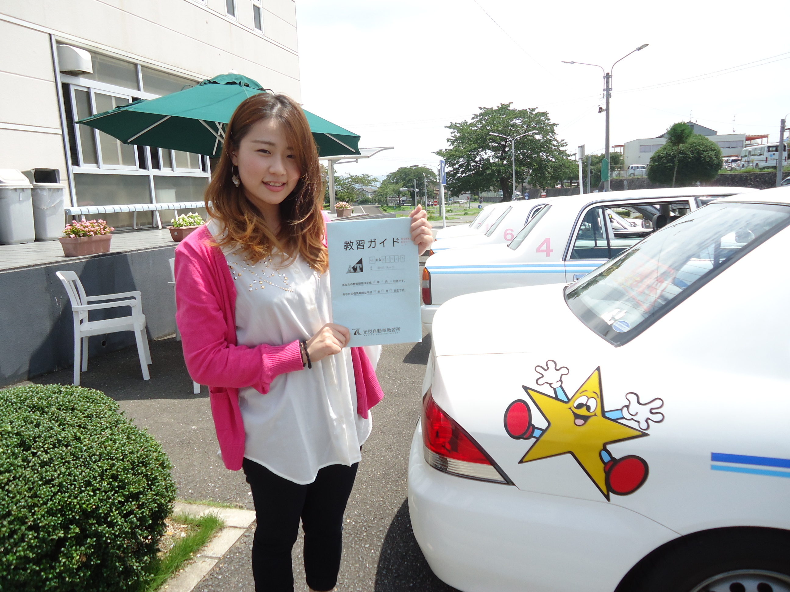 2015年8月12日。喜びのこの日。僕は、光悦自動車教習所を卒業しました。初めて配車カウンターでカードを通したのが昨日のことのように思います。あの日、いきなり所内を2.3周した時の緊張と興奮は今でも忘れられません。最初は中央線を踏みまくっていた僕も、先生たちのアドバイス、受付のおねえさんの「お疲れさまでした。」を糧に、最後には公道で運転できるようになれました。正直、自分でも驚いています。入所からの2か月間、僕をここまで運転できるようにしてくれた光悦にとても感謝しています。ここで学んだことを忘れず安全運転に努めたいです。また二輪の免許を取りに帰ってきたいと思います。